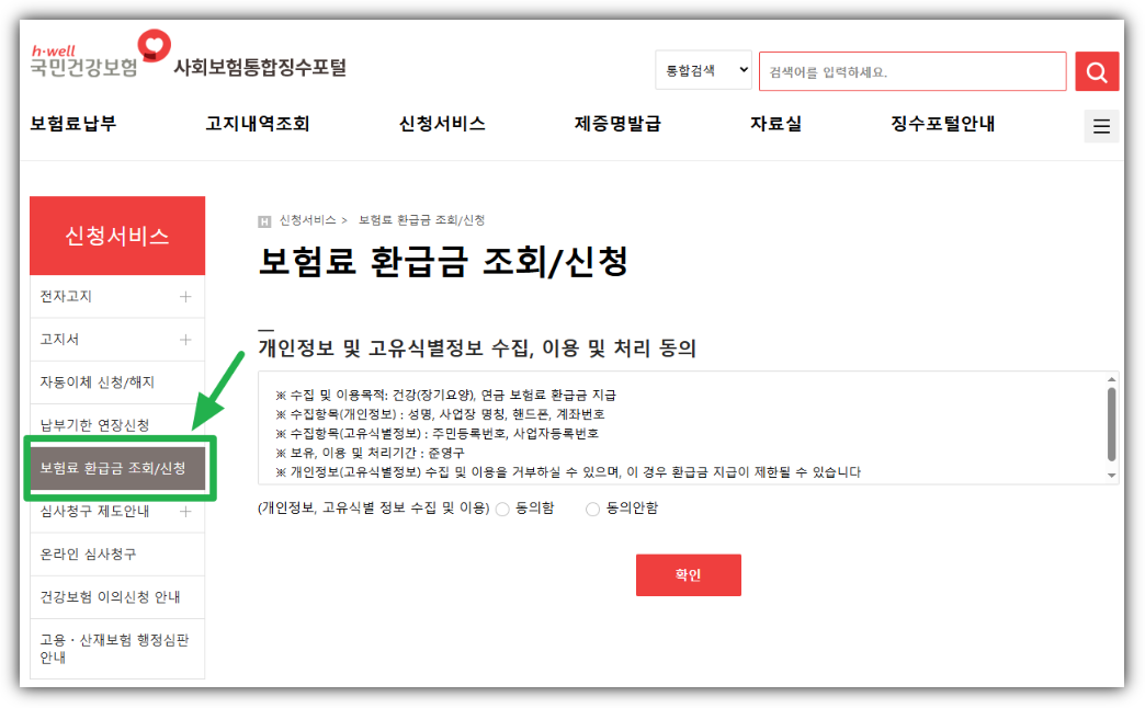 - [민원여기요] → [보험료 납부] → [보험료 환급금 조회]