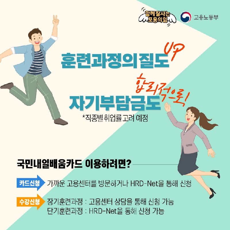 쉽게 말하면 국가가 교육비를 대신 내주는 카드라고 보면 돼요. 일을 쉬고 있는 분들뿐 아니라, 일하고 있는 분들도 신청이 가능하니 많은 분들이 혜택을 받을 수 있답니다.