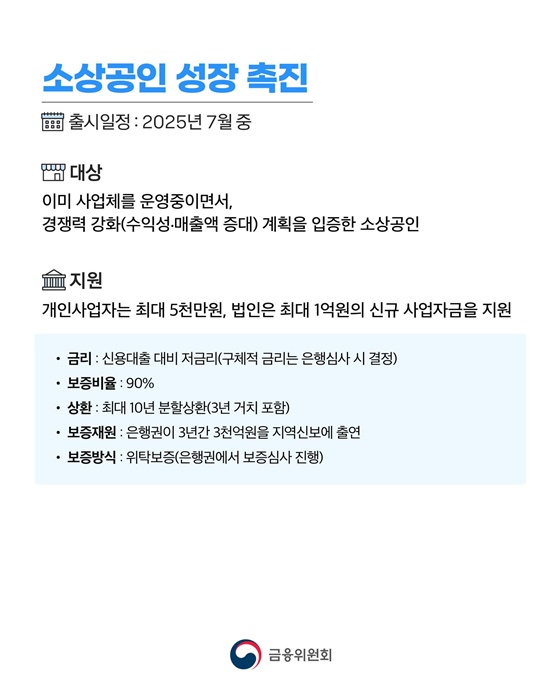 7월 도입 예정인 ‘소상공인 성장 촉진 자금’은 사업 확장과 경쟁력 강화를 위한 저금리 신규 자금 지원 프로그램입니다.