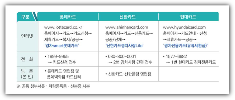 - 카드사 홈페이지에서 ‘경차 유류세 환급카드’ 신청