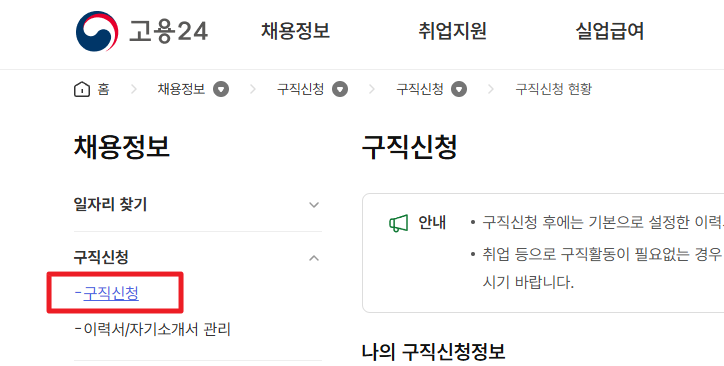 ① 고용24 구직 등록